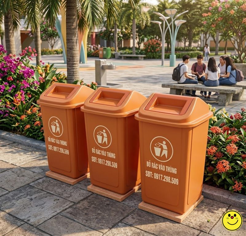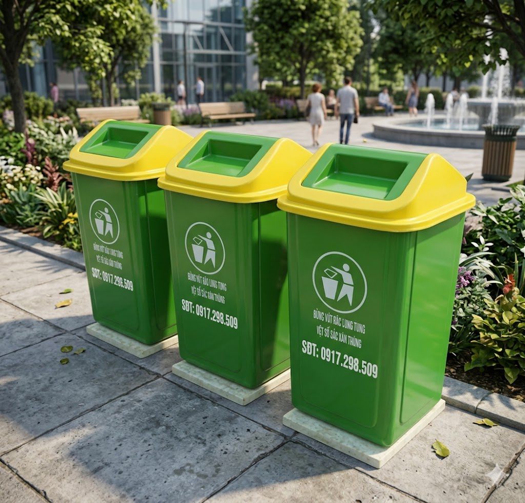 - Đế Granito cố định chống trộm, chống lật: Phần đế nặng bằng đá Granito hoặc Composite làm tăng trọng tâm của thùng. Điều này giúp thùng đứng vững vàng trước gió bão mạnh tại các khu vực công viên, ven biển, đồng thời hạn chế tối đa rủi ro bị mất cắp hay xô đổ.