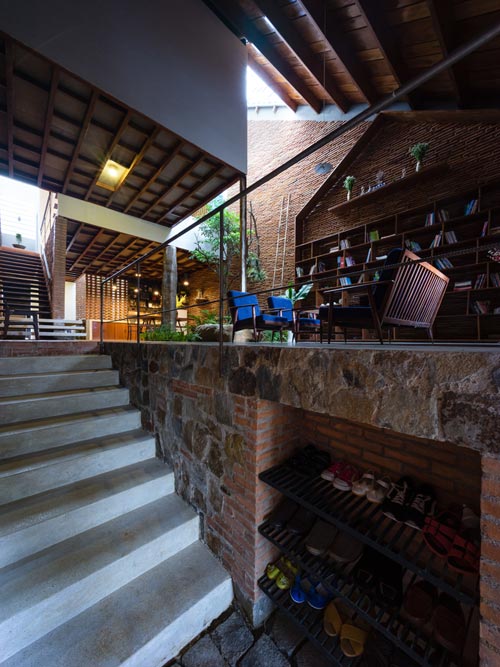 Không gian bên ngoài tưởng chừng như nhỏ nhắn nhưng khi bước vào bên trong là cả một thế giới thiên nhiên xen kẽ các khu vực sinh hoạt chung tuyệt đẹp.
